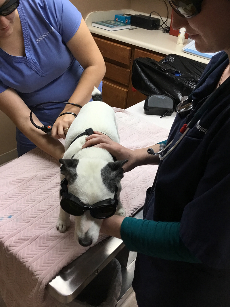 We are excited to offer a new service for pets in need of pain and wound management. Laser therapy is a noninvasive procedure that treats pain associated with arthritis, injuries, surgery and other conditions. It can also be used to treat wounds and aid in the healing process. The laser works by stimulating cell growth and blood circulation, which in turn, works to heal the affected areas. Each session only takes between 1 and 6 minutes making it relatively stress free for your pet. If you would like more information on laser therapy please give us a call. Our veterinarians will be glad to talk with you about how this new procedure can benefit your pet’s specific needs. For more information visit Companion Therapy Laser.