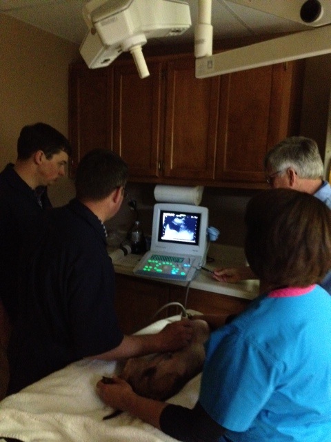 Ultrasound is a diagnostic imaging technique used in conjunction with radiography and other diagnostic measures. It allows a non-invasive visualization of the deep structures of the body. It can be used for a variety of purposes including examination of your pet’s heart, kidneys, liver, etc. It can also be used to determine and monitor pregnancy. It has the ability to also detect fluid, cysts, tumors, or abscesses.